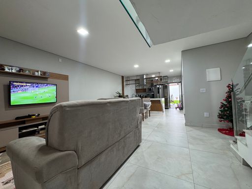Descubra o conforto e a sofisticação desta casa moderna e luxuosa, planejada para oferecer amplitude, elegância e praticidade em cada detalhe. Arejada e iluminada naturalmente graças às janelas grandes, a residência proporciona ambientes amplos e integrados, trazendo mais conforto para o dia a dia. A casa conta com uma cozinha espaçosa, perfeita para quem valoriza funcionalidade e estilo; sala ampla ideal para receber convidados; e um lavabo que acrescenta praticidade ao espaço social. Na área íntima, você encontra uma semi suíte, além de três quartos, sendo uma suíte principal com closet e varanda, oferecendo privacidade, conforto e um toque especial para seus momentos de descanso. Para lazer e convivência, a casa possui área de churrasqueira e uma ótima lavanderia. O imóvel ainda dispõe de garagem para até 3 carros grandes e 1 carro pequeno, garantindo praticidade para toda a família. O acabamento é impecável: piso em porcelanato, pias em granito e esquadrias pretas, trazendo um visual sofisticado, moderno e durável. Uma casa completa, elegante e pronta para encantar você em cada detalhe. Ideal para quem busca qualidade de vida, espaço e modernidade.