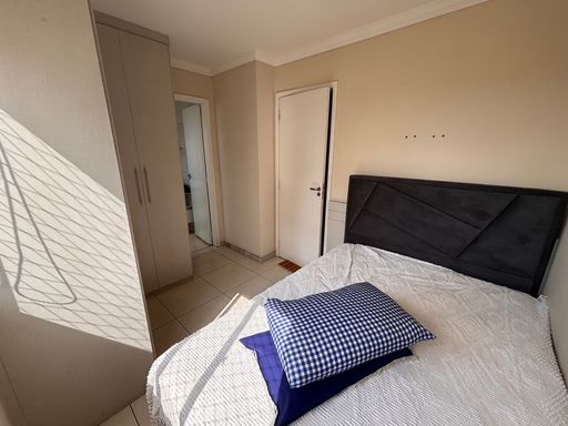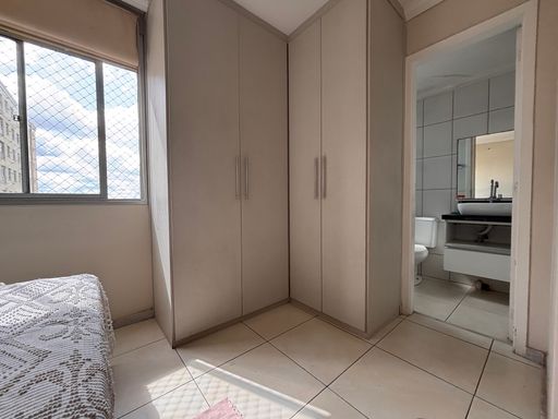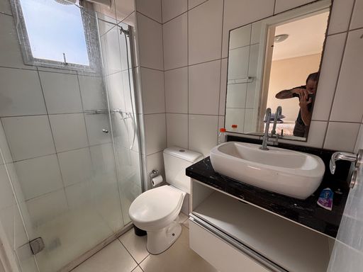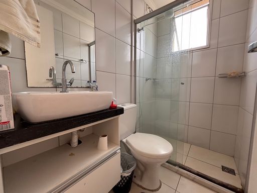 O imóvel conta com sala ampla para dois ambientes, proporcionando conforto e ótima distribuição dos espaços. São dois quartos, sendo uma suíte com armário planejado, garantindo praticidade e organização. Tanto o banheiro da suíte quanto o social possuem bancada em granito, box em blindex e armários planejados, oferecendo excelente acabamento e funcionalidade.