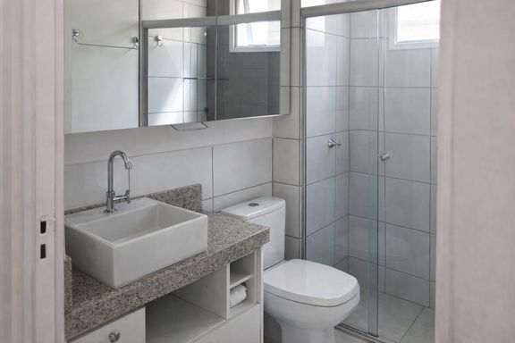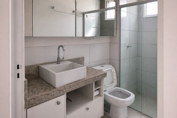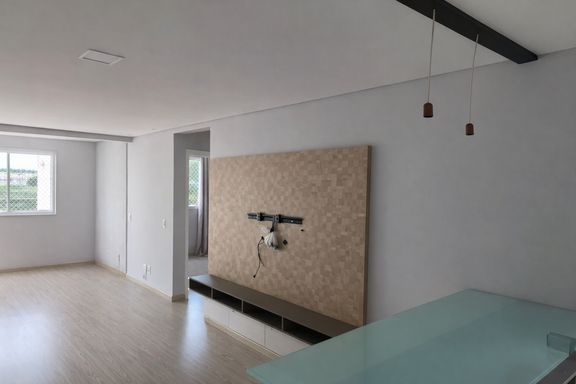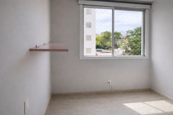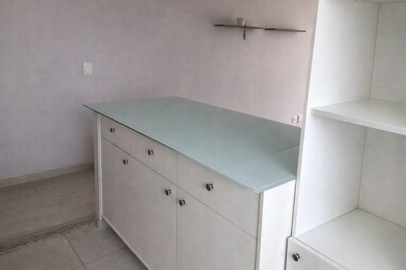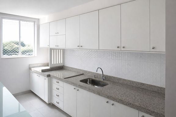 O imóvel conta com 2 quartos com armários planejados, proporcionando organização e melhor aproveitamento dos espaços. A sala possui piso em laminado de madeira, trazendo aconchego ao ambiente. O banheiro é completo, com pia em granito e box em blindex. A cozinha também dispõe de armários planejados e bancada em granito, garantindo funcionalidade e durabilidade.