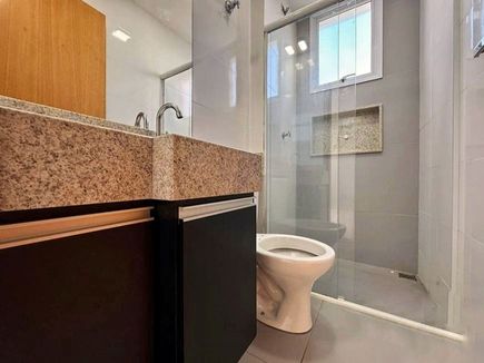 Com aproximadamente 45m² de área construída, o apartamento apresenta uma planta funcional e bem distribuída. A sala para dois ambientes oferece um espaço aconchegante e versátil para receber visitas e aproveitar momentos em família. São dois quartos bem iluminados, ideais para atender diferentes necessidades, além de um banheiro social com bancada em granito, armário planejado, box em blindex e nicho na área de banho, trazendo mais praticidade e sofisticação.