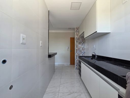 O imóvel conta com 2 quartos bem distribuídos, 1 banheiro social com armários, além de uma cozinha planejada com armários que oferece praticidade e organização no dia a dia. A sala é aconchegante, com espaço ideal para dois ambientes.