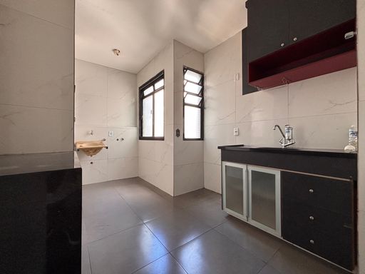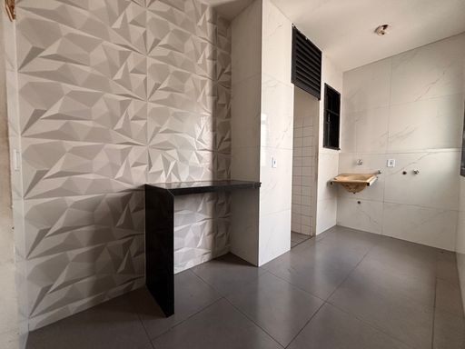 A cozinha conjugada com a área de serviço é funcional e bem distribuída, ideal para o dia a dia. O apartamento conta também com banheiro social, atendendo com praticidade a rotina da família.