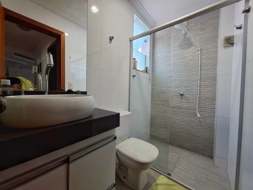São 3 quartos bem dimensionados, sendo 1 suíte, além de banheiro social que atende aos demais ambientes.