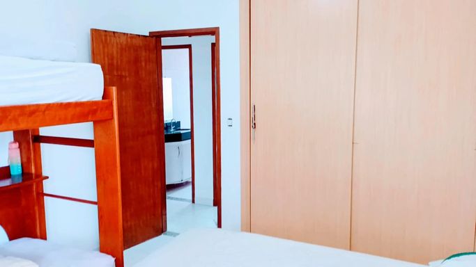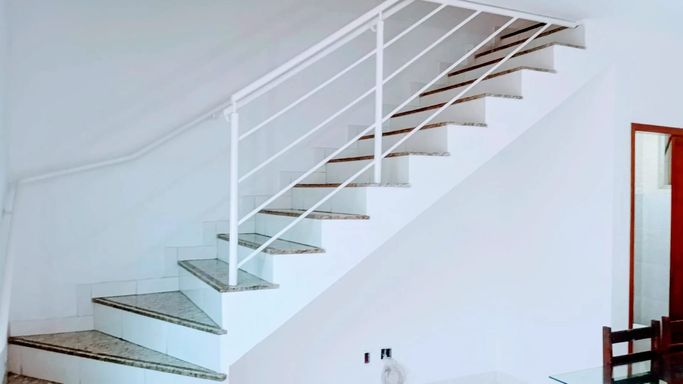 No segundo nível, o acesso é feito por escada em granito, levando a dois quartos amplos com armários planejados, sendo um deles com varanda. O banheiro social possui armário e pia em granito, mantendo o padrão de qualidade do imóvel. A casa é individual, independente e de frente para a rua, oferecendo privacidade e conforto. Além disso, há potencial de ampliação, com possibilidade de criação de uma suíte ou até mais dois quartos, tornando o imóvel ainda mais versátil para diferentes perfis de família.