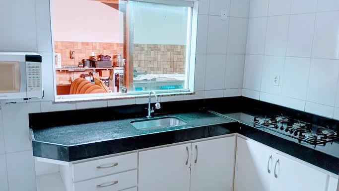 O imóvel possui 120m² de área construída em um terreno de 130m², com projeto inteligente e ambientes amplos. No primeiro nível, a sala espaçosa conta com lavabo, proporcionando conforto para receber visitas. A cozinha é grande, equipada com armários, assim como a área de serviço. Nos fundos, a casa surpreende com uma área gourmet coberta de aproximadamente 40m², com churrasqueira, pia em granito, estrutura em madeira e telhado, perfeita para momentos de lazer e convivência em família. O terreno em formato de U permite excelente aproveitamento dos espaços, além de contar com corredor lateral e três vagas de garagem, com possibilidade de ampliação.