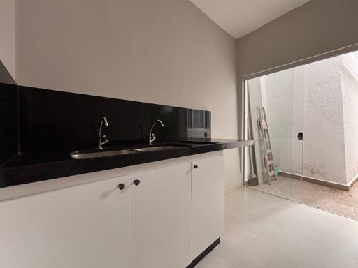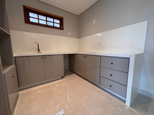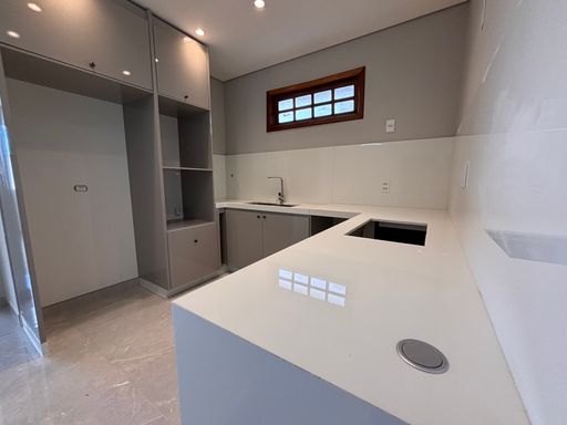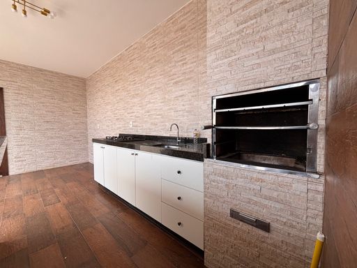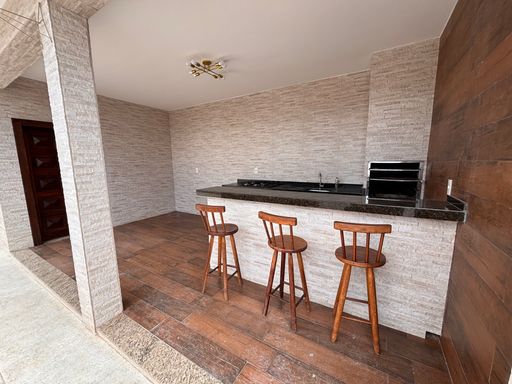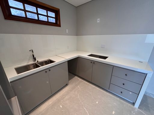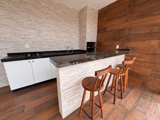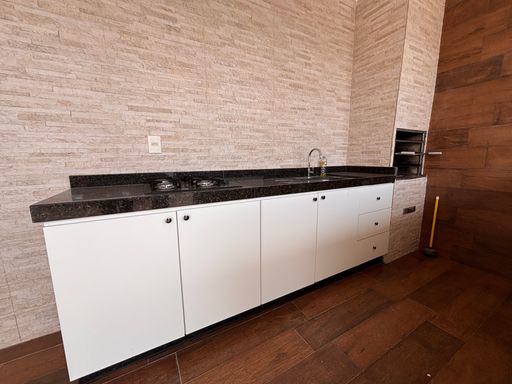 A cozinha moderna, equipada com armários planejados e pias em porcelanato, alia design e praticidade. O imóvel conta ainda com área de serviço independente, trazendo mais organização para o dia a dia. Já a área gourmet com churrasqueira é perfeita para momentos de lazer e confraternização com família e amigos.