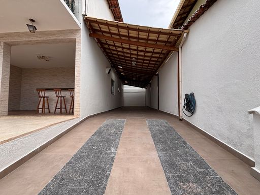 O quintal descoberto é um grande diferencial, já com preparação para instalação de jacuzzi, ideal para quem deseja criar um espaço de relaxamento exclusivo. A casa dispõe de 4 vagas de garagem, sendo 3 cobertas e 1 descoberta, oferecendo comodidade e segurança.