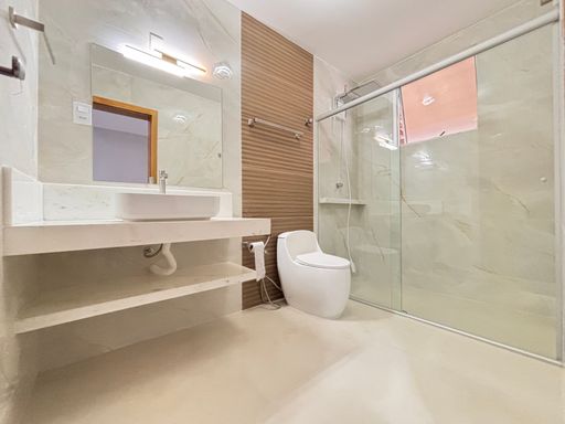 O acabamento é um dos grandes destaques, com teto rebaixado em gesso, piso e pias em porcelanato e iluminação em LED em todos os cômodos, proporcionando um ambiente sofisticado, moderno e acolhedor.