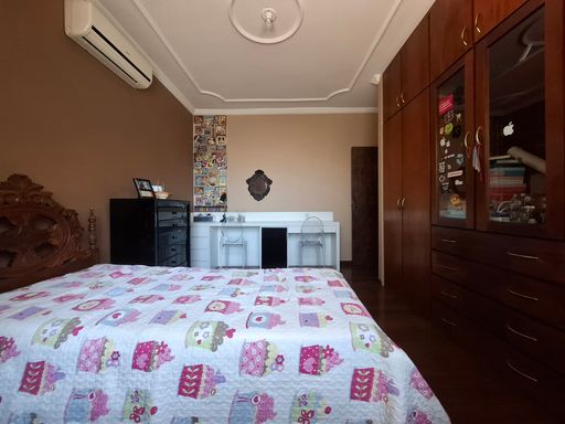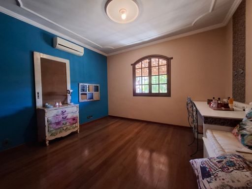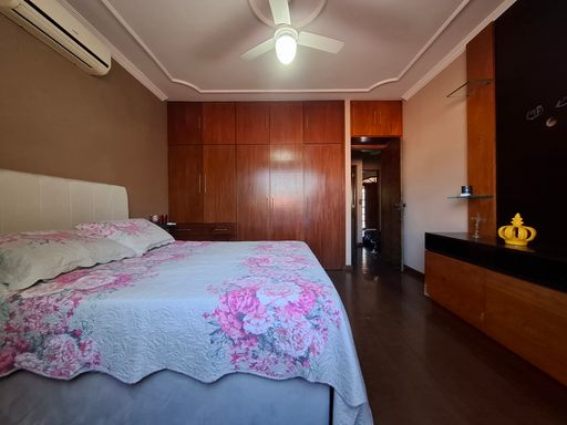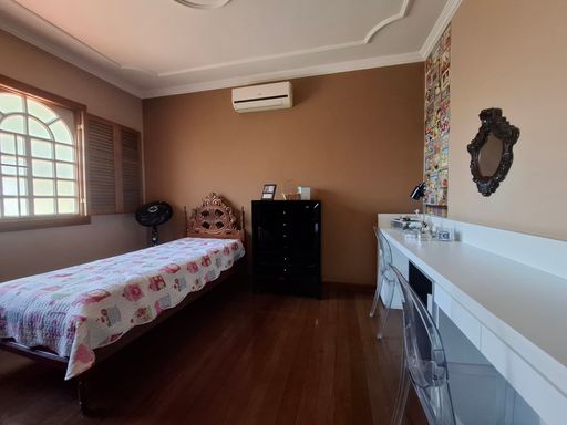 No segundo pavimento, a área íntima garante privacidade e conforto. São quatro quartos bem distribuídos, sendo três com ar-condicionado e uma suíte espaçosa que conta com banheira, proporcionando mais conforto e um ambiente ideal para relaxamento. O andar dispõe ainda de um banheiro social e uma varanda ampla em formato L, que favorece a ventilação natural, a iluminação e cria um espaço agradável para descanso e contemplação.