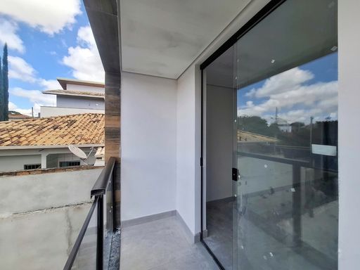 No segundo pavimento, a casa dispõe de dois quartos, ambos com suíte, garantindo mais conforto e privacidade. O quarto da frente ainda conta com varanda, proporcionando um espaço agradável e bem ventilado. O acabamento em porcelanato e as bancadas em granito reforçam o padrão moderno e a qualidade do imóvel.