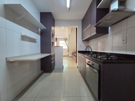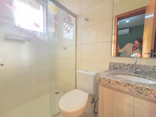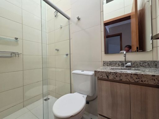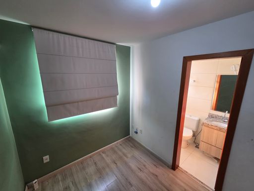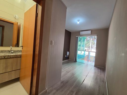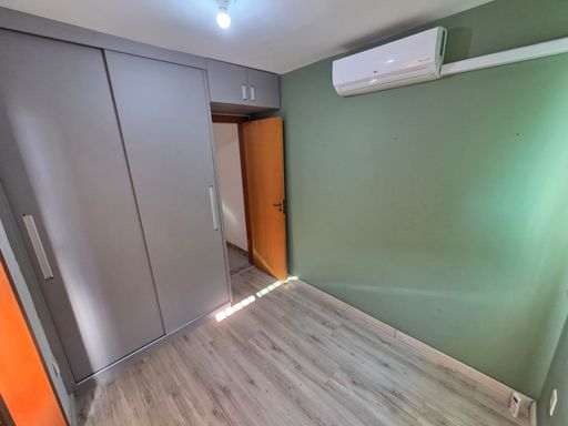 O imóvel possui 2 quartos com armários e ar-condicionado, ambos suítes, garantindo privacidade e comodidade, além de um total de 3 banheiros. A sala é aconchegante, já equipada com painel de TV, integrada a uma cozinha planejada, moderna e funcional.