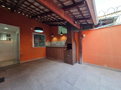 A área externa conta com uma charmosa área gourmet com bancada em granito e churrasqueira, ideal para momentos de lazer.