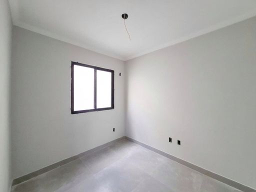 No pavimento superior, a casa conta com três quartos, sendo um com suíte, closet e varanda, oferecendo mais conforto e um espaço íntimo aconchegante. Os ambientes são bem ventilados e iluminados, com janelas em esquadria de alumínio que contribuem para maior durabilidade e melhor aproveitamento da luz natural.