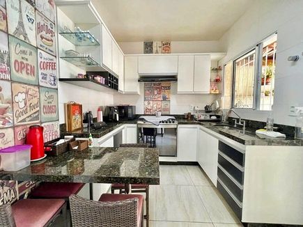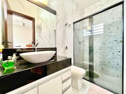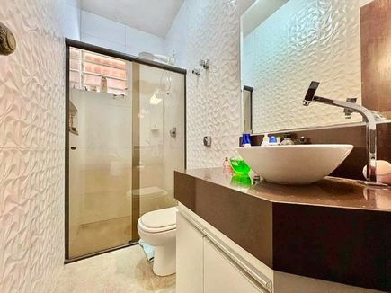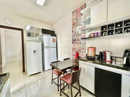 A área social é um dos destaques, com sala de TV acolhedora e uma espaçosa sala de jantar, perfeitas para momentos de convivência e recepção de visitas. A cozinha conta com armários planejados, oferecendo um ambiente funcional e organizado, enquanto a área de serviço é clara e arejada, facilitando as atividades do cotidiano.