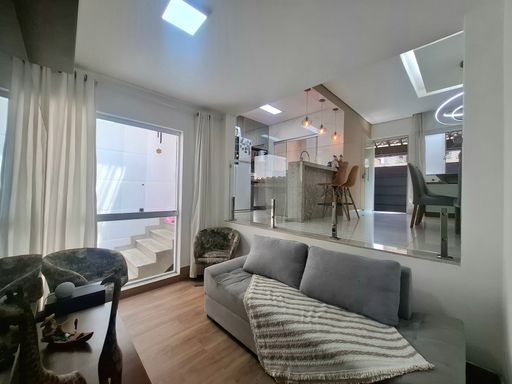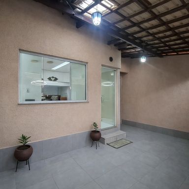 O imóvel foi planejado para proporcionar conforto e versatilidade aos moradores. No pavimento principal, conta com duas salas amplas, sendo que uma delas pode ser facilmente convertida em um terceiro quarto, adaptando-se às necessidades da família. A cozinha possui armários planejados, garantindo organização e funcionalidade. São dois quartos bem distribuídos, sendo um com armário planejado, além de um banheiro social que atende com praticidade a área interna.