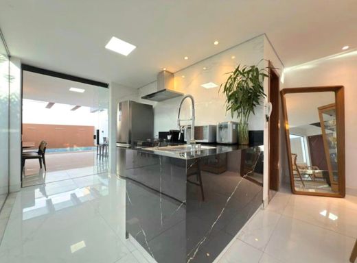 A casa moderna a venda no bairro Vila Clóris impressiona pelo projeto contemporâneo, ambientes amplos e acabamento de alto padrão. No primeiro pavimento, a sala ampla para dois ambientes oferece integração e conforto, conectando-se à cozinha com armários planejados, ideal para quem valoriza funcionalidade e estética. O espaço gourmet com churrasqueira revestida e pergolado cria o cenário perfeito para momentos de lazer, complementado pela piscina aquecida com cascata. O imóvel conta ainda com dois lavabos, corredor lateral e área de lavanderia, garantindo praticidade no cotidiano. No segundo pavimento, são três quartos com ar-condicionado, sendo duas suítes, uma delas com closet e varanda, além de uma sala de TV também com varanda, proporcionando conforto, privacidade e bem-estar para toda a família.