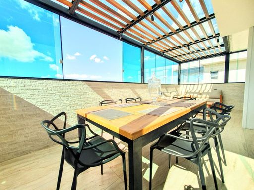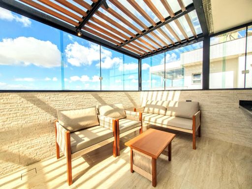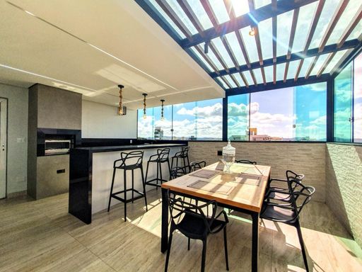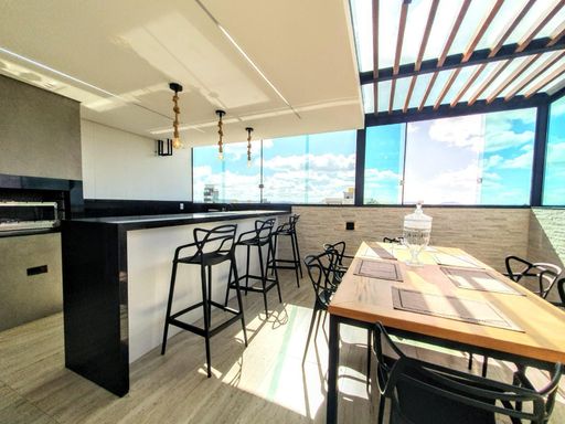 No segundo pavimento, a cobertura à venda no Planalto se destaca pelo excelente espaço de convivência. O andar superior dispõe de uma sala adicional, um quarto, banheiro social e uma área externa ampla, totalmente fechada com cortinas de vidro, oferecendo uma vista definitiva e um ambiente ideal para momentos de lazer. A área gourmet com churrasqueira e bancada é perfeita para receber amigos e familiares, além de contar com espaço de lavanderia independente, trazendo mais comodidade ao dia a dia.