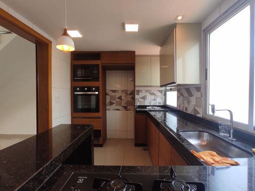 O imóvel se destaca pelo excelente padrão, distribuição inteligente dos ambientes e conforto em dois pavimentos. No primeiro piso, a cobertura conta com três quartos com armário, sendo uma suíte, além de um banheiro social com box blindex. A sala é ampla e bem iluminada, ideal para criar ambientes de estar e jantar de forma integrada. A cozinha é funcional e moderna, equipada com armários planejados, forno embutido, micro-ondas embutido e cooktop, oferecendo praticidade e sofisticação no dia a dia. No segundo piso, o imóvel dispõe de uma sala adicional, banheiro e um amplo espaço externo da cobertura com churrasqueira, perfeito para momentos de lazer, confraternizações e descanso, valorizando ainda mais a experiência de morar em uma cobertura duplex.