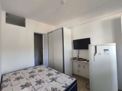 O imóvel foi pensado para oferecer conforto, funcionalidade e praticidade, sendo ideal para quem busca uma moradia completa e pronta para morar. A kitnet conta com um quarto suíte mobiliado com cama, guarda-roupa e televisão, além de pia com armário, geladeira e fogão elétrico, garantindo autonomia e organização no espaço privativo. Nos ambientes de uso comum, o condomínio oferece uma cozinha gourmet totalmente equipada, com churrasqueira, cooktop, geladeira, airfryer, micro-ondas, liquidificador e pia com armários, além de mesas e cadeiras, criando um ambiente agradável para refeições e momentos de convivência. O espaço ainda conta com vista definitiva, agregando valor e bem-estar à experiência de morar no local. Há também área de serviço compartilhada, equipada com máquinas de lavar e varal, trazendo mais comodidade à rotina dos moradores.