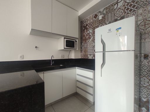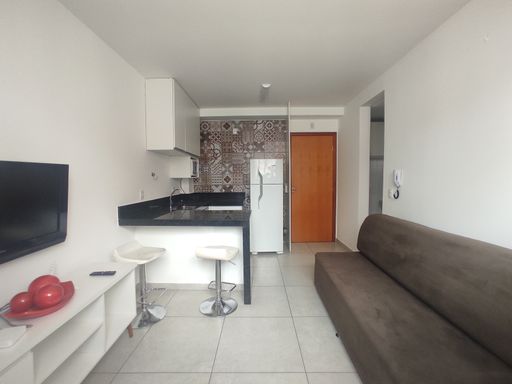 O bem-estar é um dos grandes destaques desta kitnet para alugar no bairro Ouro Preto. O imóvel conta com um quarto equipado com armário planejado, cama de casal e ar-condicionado, proporcionando conforto térmico e organização. O banheiro possui armário, espelho e box blindex, garantindo funcionalidade e bom acabamento. A sala é aconchegante, mobiliada com sofá, televisão e rack, criando um ambiente agradável para descanso e entretenimento. A cozinha em estilo americana dispõe de armário planejado, geladeira, fogão por indução e micro-ondas, oferecendo praticidade e integração entre os ambientes. A distribuição inteligente dos espaços favorece a ventilação, a iluminação natural e o aproveitamento eficiente da área interna.