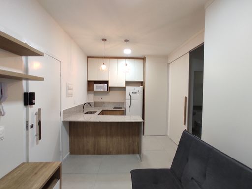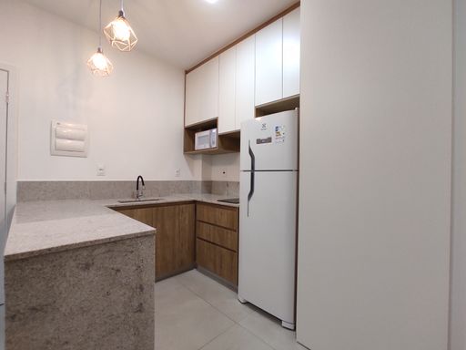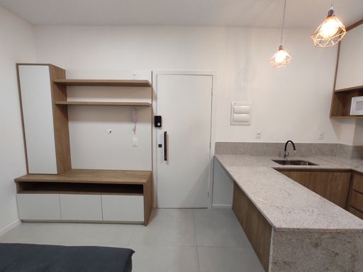 O bem-estar é um dos grandes destaques desta kitnet para alugar no bairro Paquetá. O imóvel conta com um quarto equipado com armário planejado, cama de casal e ar-condicionado, proporcionando conforto térmico e organização. O banheiro possui armário, espelho e box blindex, garantindo funcionalidade e bom acabamento. A sala é aconchegante, mobiliada com sofá e rack, criando um ambiente agradável para descanso. A cozinha em estilo americana dispõe de armário planejado, geladeira, fogão por indução e micro-ondas, oferecendo praticidade e integração entre os ambientes. A distribuição inteligente dos espaços favorece a ventilação, a iluminação natural e o aproveitamento eficiente da área interna.